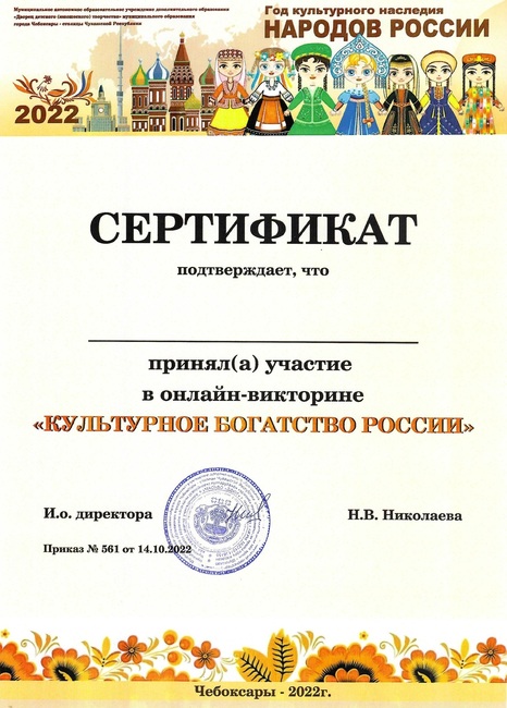 Онлайн-викторина «Культурное богатство России»